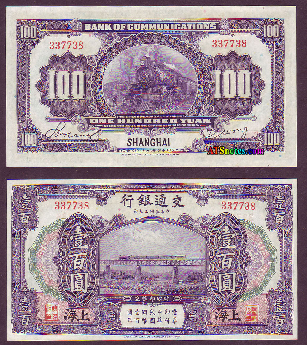 120a 100 yuan 1914 Chungking, purple..................... VF 200