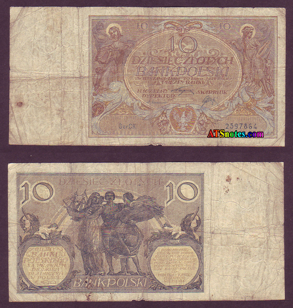 65b Mi64d 10 zl 1926 wmk "10-zl"...................... G+90, VG- 120