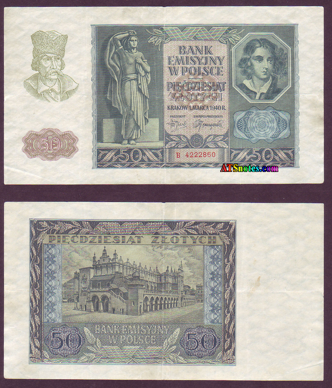 50 Mi78c 1 zl 1938 unfinished; only back................ AU+ 100