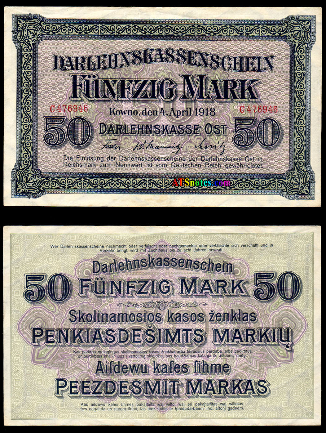 4 50 rup 1298 (1920)............................ VF 100, VF+ 150