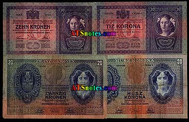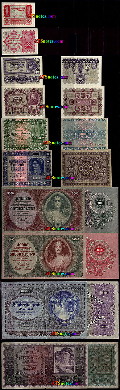 | 29-36 | 1918 | 1.000, 1.000, 5.000, 5.000, 10.000, 10.000, 100.000, 1.000.000 kronen; Kassenschein |