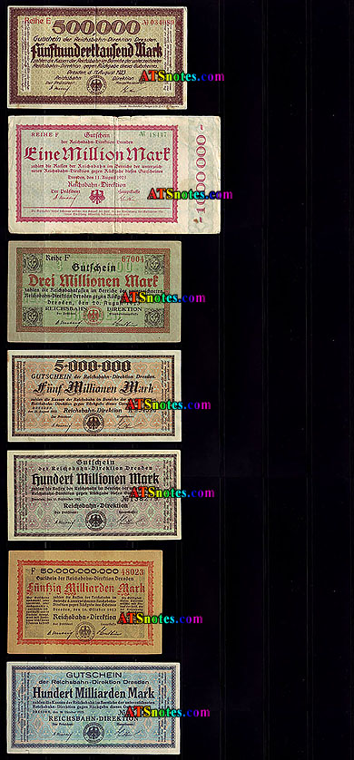 | s1311-7 | 1923 | 500.000 mark, 2, 5, 200, 500 Millionen, 50, 100, 500 Milliarden, 1, 5 Billionen mark |