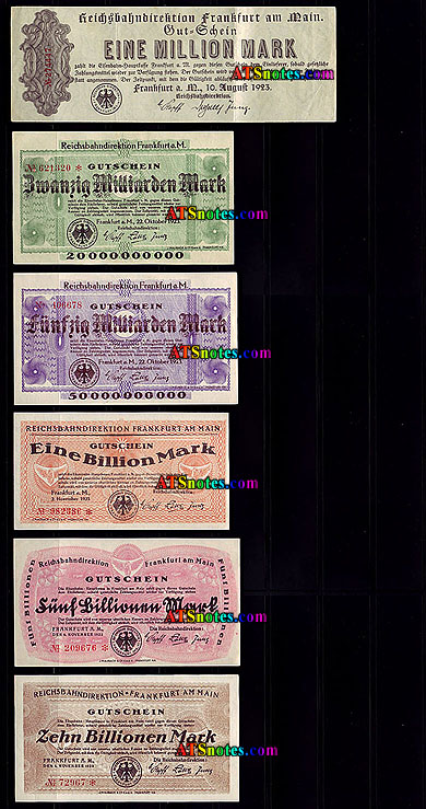 | s1111-25 | 1923 | 500.000 mark, 1, 2, 5, 100, 200, 500 Millionen, 1, 5, 10, 20, 50, 100, 500 Milliarden, 1 Billionen mark |