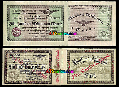 | s1131-41 | 1923 | 500.000 mark, 1, 2, 5, 5, 50, 100 Millionen, 50, 50, 100, 500 Milliarden mark |