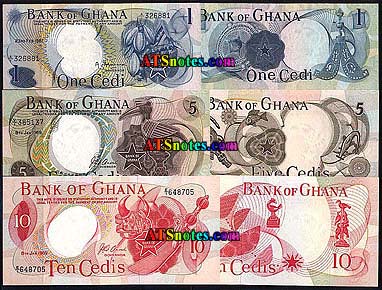 | 5-9A | (1965) | 1, 5, 10, 50, 100 cedis; 1.000 cedis(for inter-bank transactions only) |