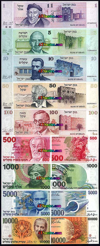| 43-53 | 1978-84 | 1, 5, 10, 50, 100, 500, 1.000, 5.000, 10.000 Sheqels |