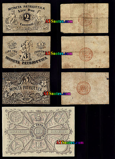 | s185-90 | 1848 | 1, 2, 3, 5, 50, 100 Lire; Moneta Patriottica |